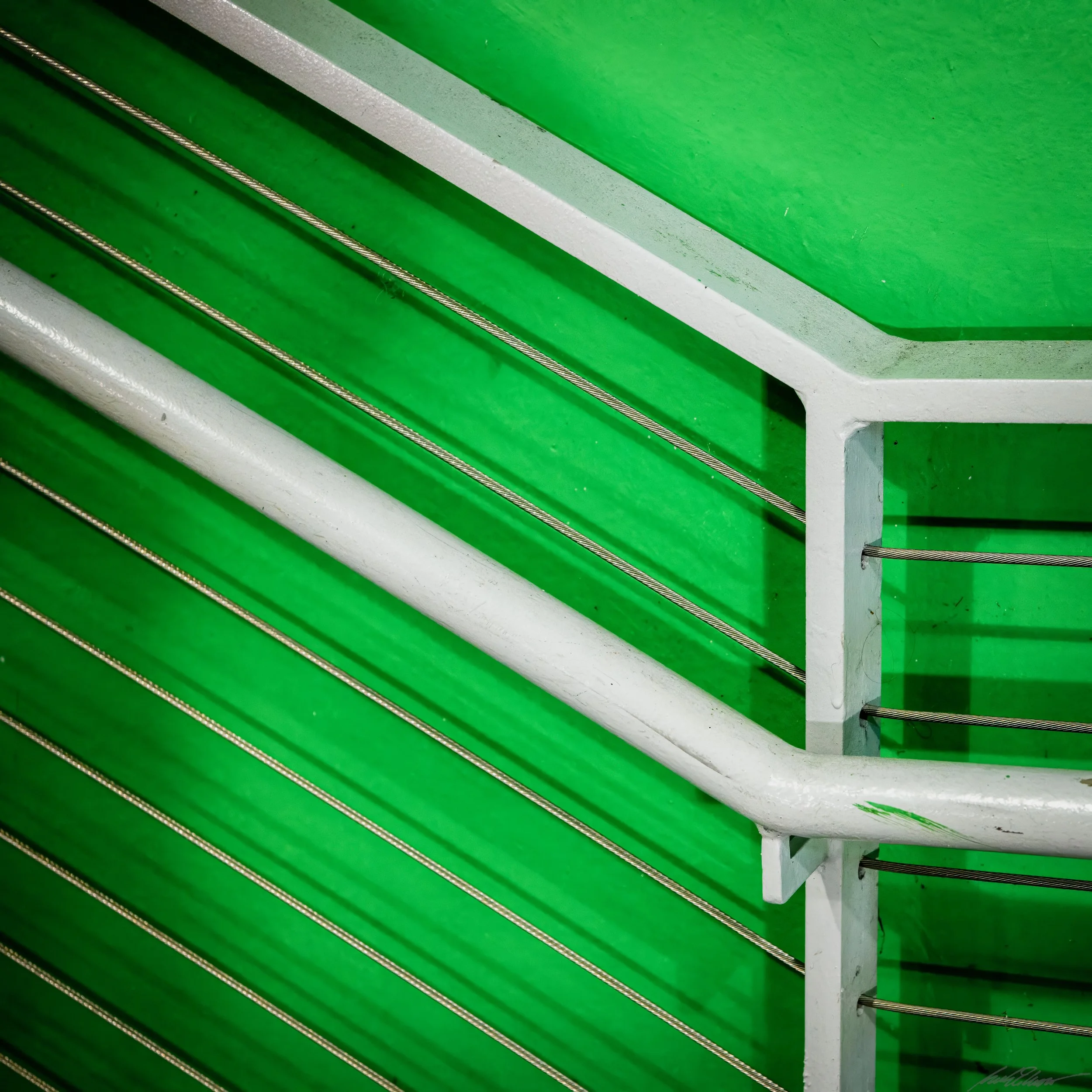 Railing - in a garage in Golden Gate Park, the bright wall and strong lines offered an interesting abstract.